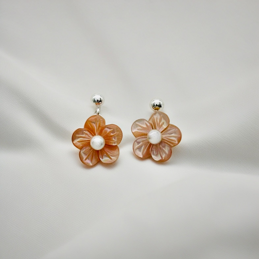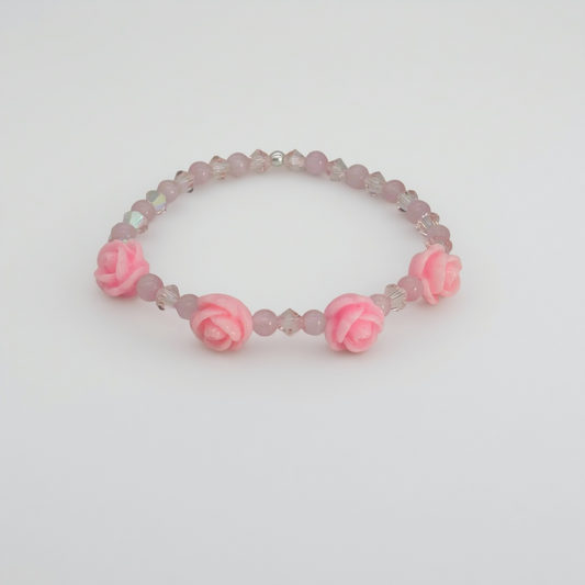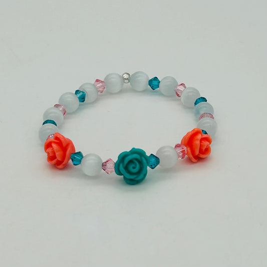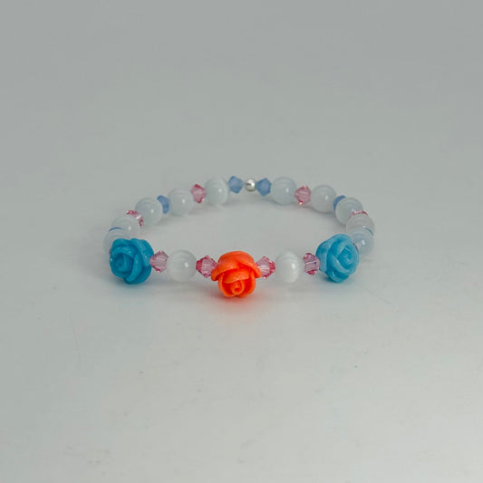 Ch987BL Blue and Peach Flowers Bracelet 6"