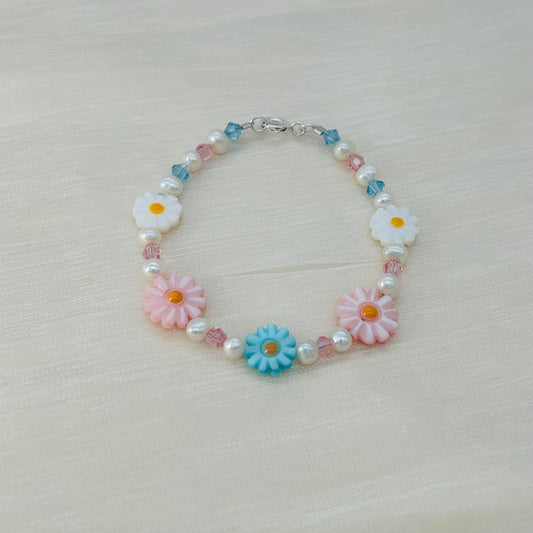 CH987BL Flowers Assorted Colors Bracelet 5.5"