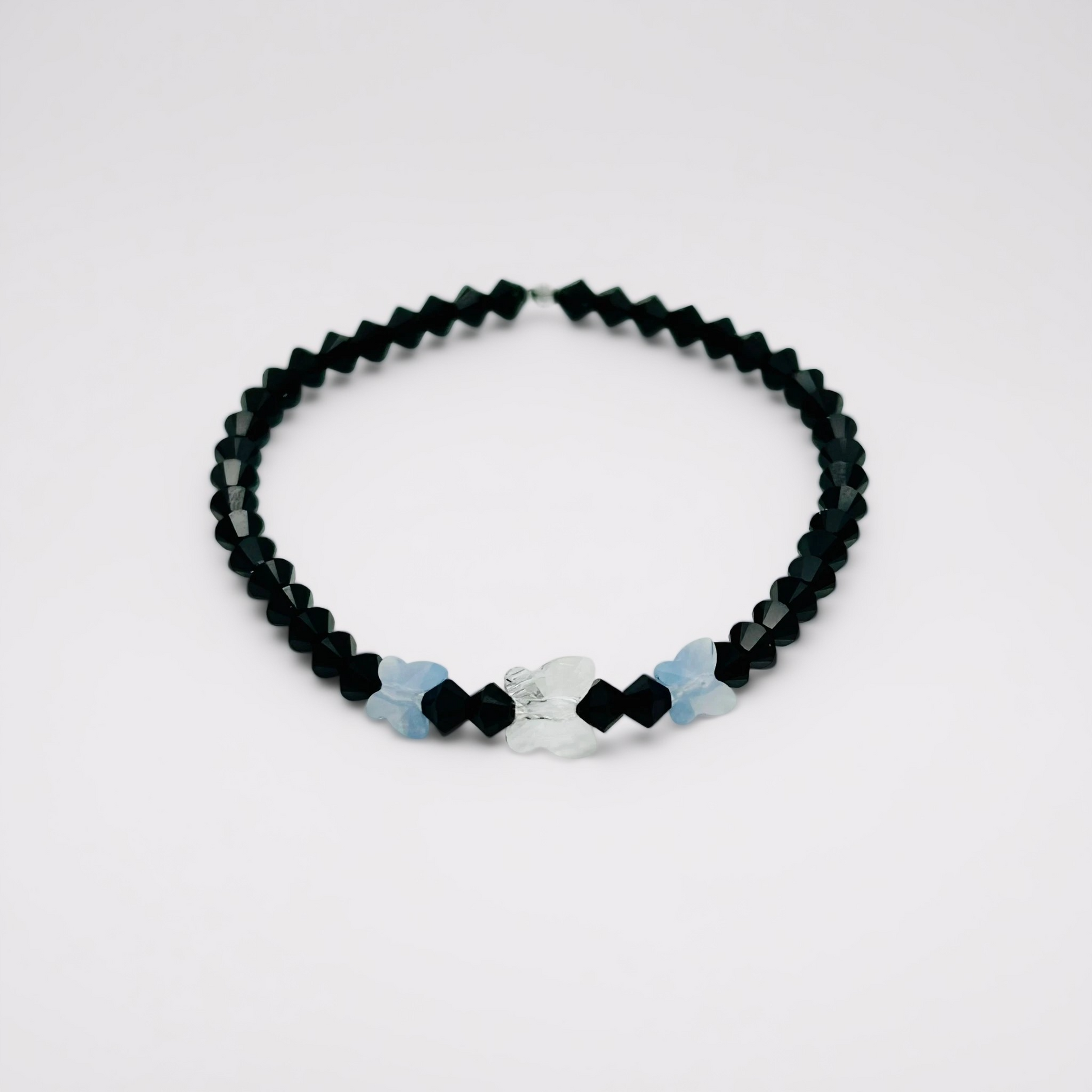Add an elegant touch to your outfit with our C1300BL SW Crystals Butterflies Bracelet. Made from 925 sterling silver and European crystals, this bracelet is not only beautiful but also durable. Perfect for any occasion, it will complement any outfit with its shimmering design.