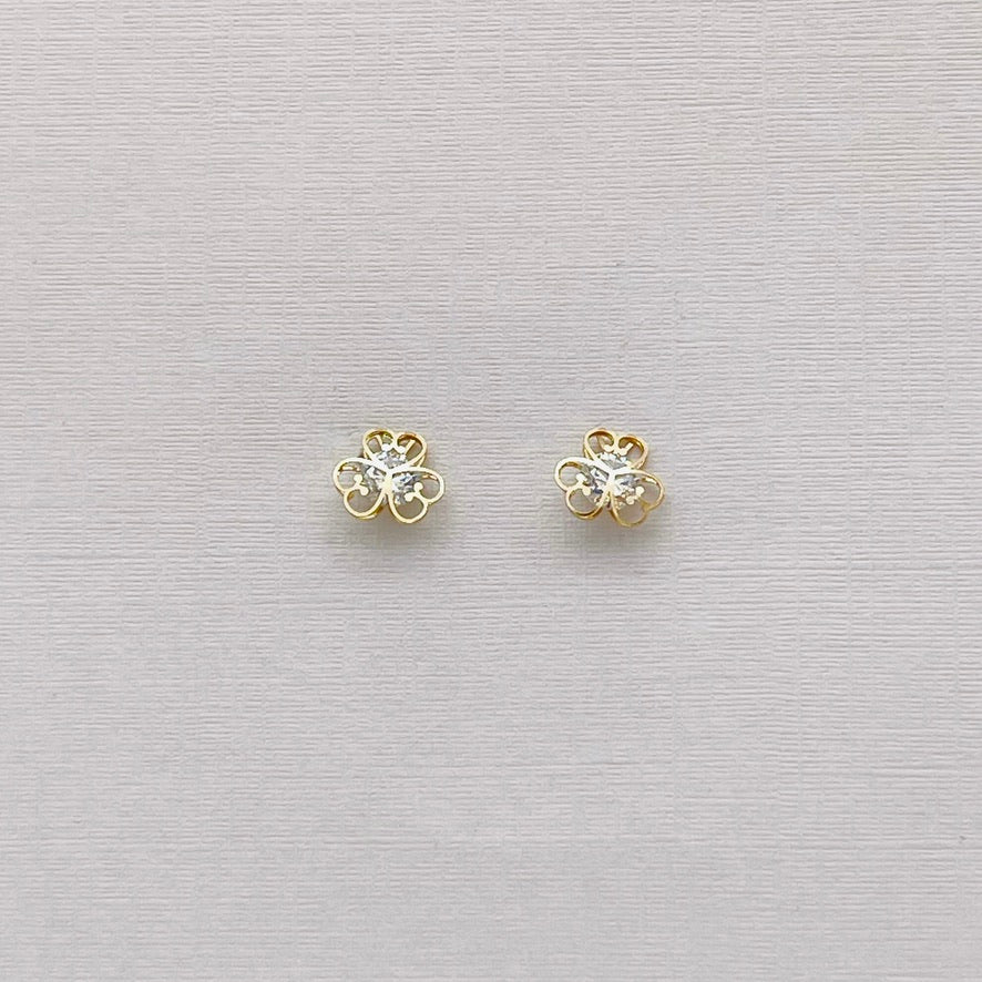 Crafted with genuine 14 karat gold and sparkling cubic zirconia, these G295ER Flower Earrings exude elegance and sophistication. Enhance any outfit with the luxurious touch of these beautifully crafted earrings. Perfect for any occasion, these earrings are a must-have for any jewelry collection.