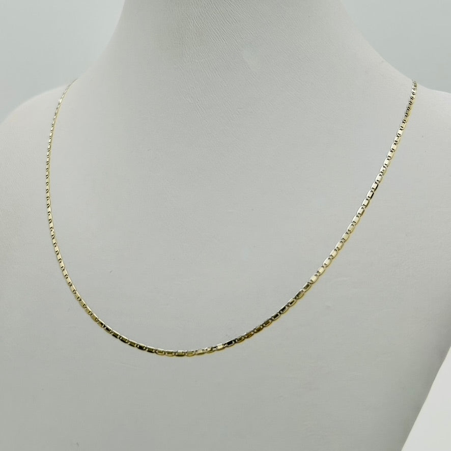 This 14K Gold G384Ch Valentino Style Chain measures 1.3x16" and is a stunning addition to any jewelry collection. The high-quality 14K gold material is both durable and luxurious, providing a beautiful shine and timeless style. This chain is perfect for everyday wear or special occasions.
