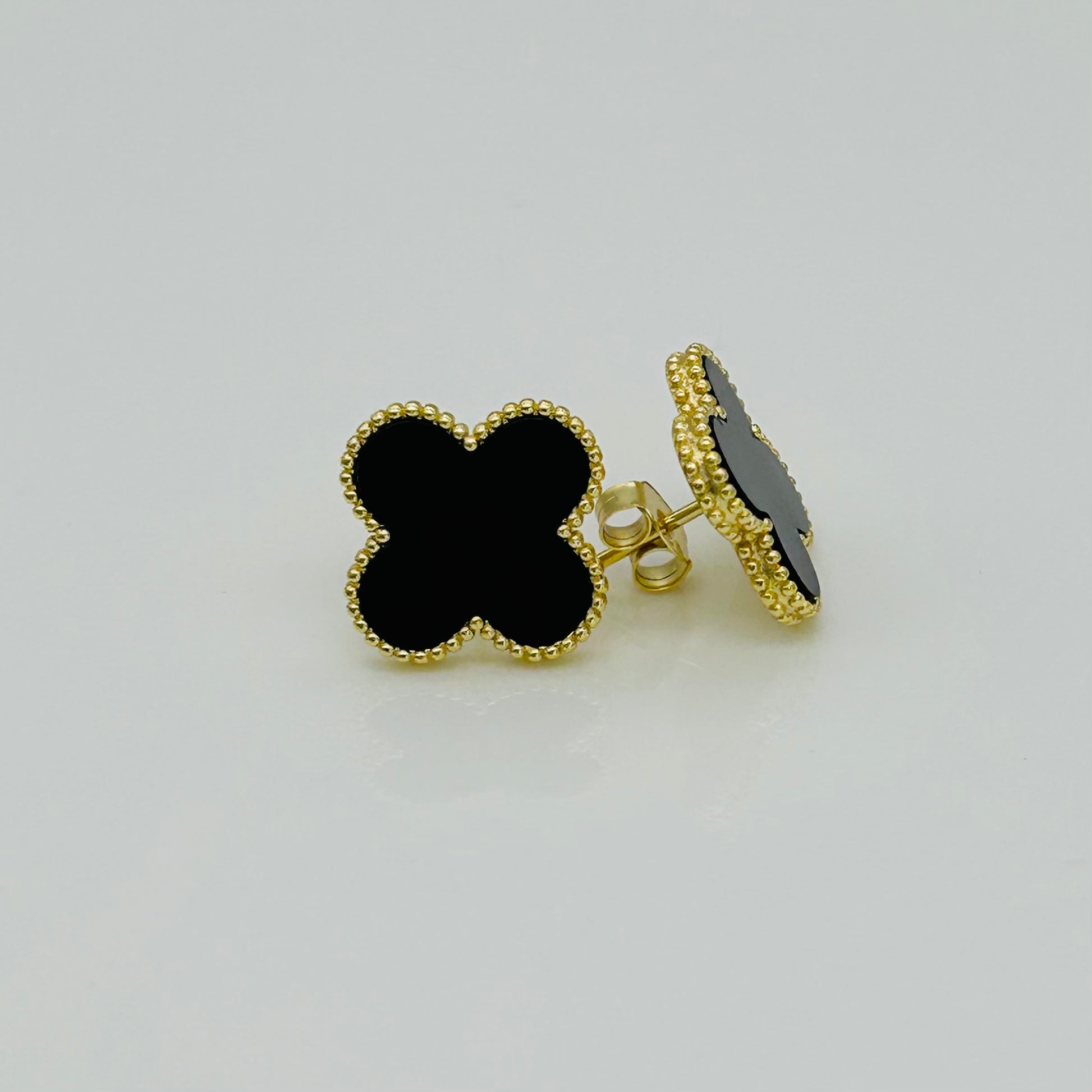 These 13mm clover earrings are crafted from .925 sterling silver and finished with a luxurious gold plating, combining durability with elegant style. Their delicate size and timeless design make them a versatile accessory for everyday wear or special occasions, offering a subtle yet sophisticated touch to any outfit.
