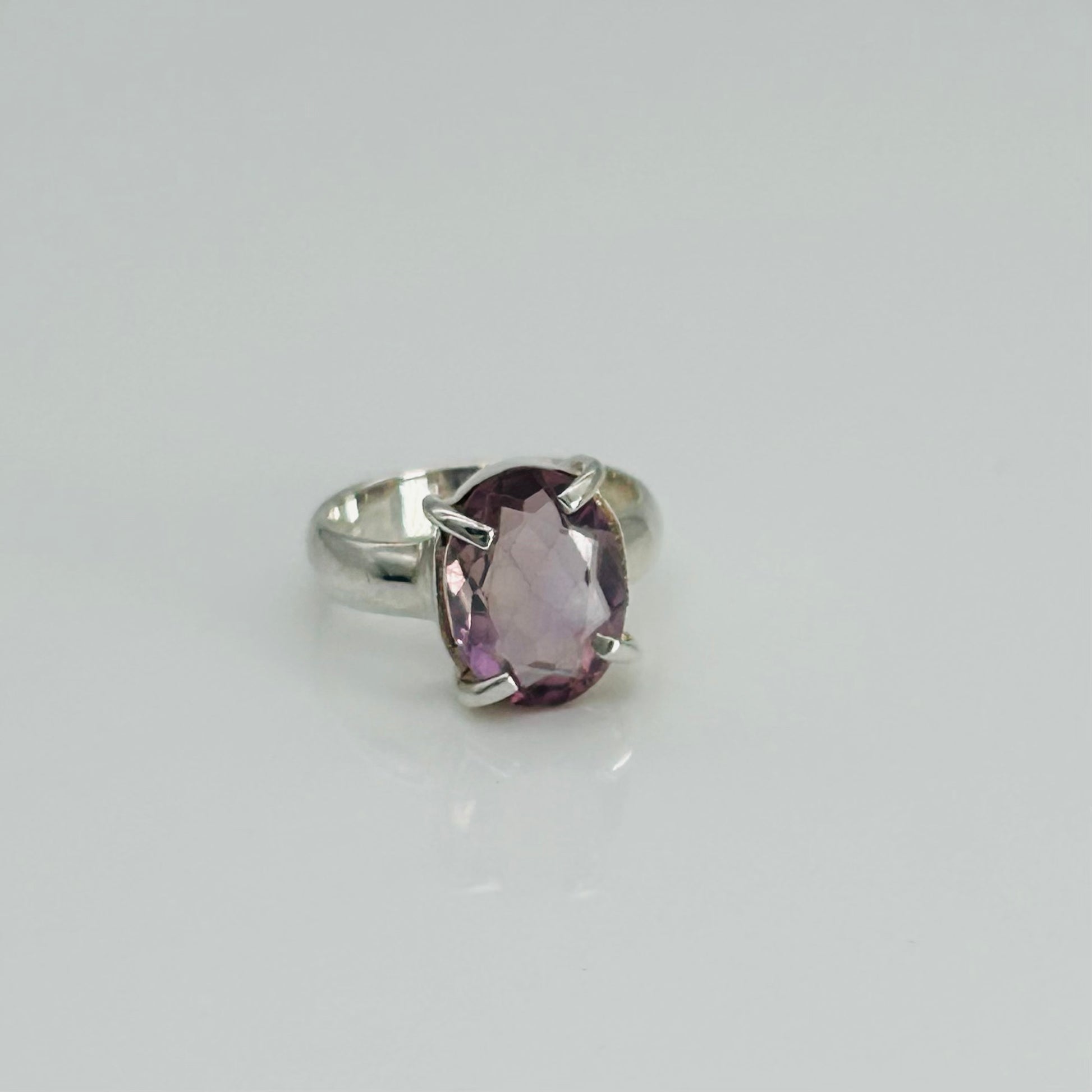 Crafted from genuine 925 sterling silver, this ring showcases a stunning amethyst gemstone, known for its rich purple hue and natural elegance. Sized at 7.5, it offers a perfect balance between durability and refined style. Ideal for those seeking a piece that combines timeless precious metal quality with the calming, spiritual properties of amethyst.