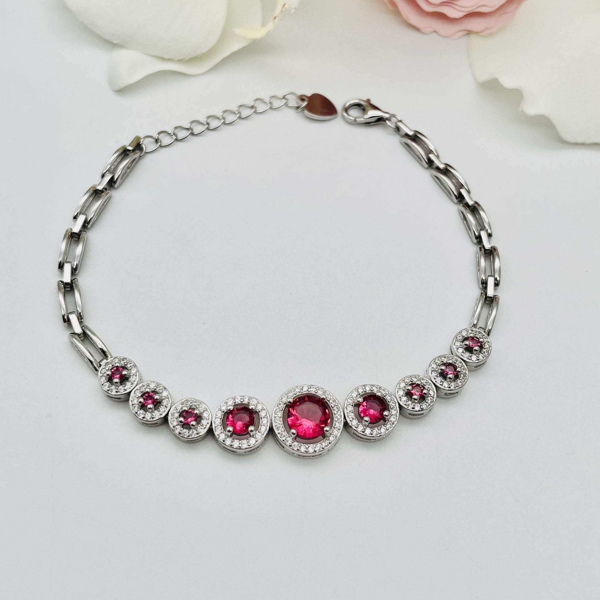 Crafted with genuine 925 sterling silver and sparkling cubic zirconia, the Z1792BL Garnet Bracelet adds a touch of elegance to any outfit. With its high-quality materials and 7.5" length, this bracelet exudes timeless beauty and sophistication. Elevate your jewelry collection with this stunning piece.