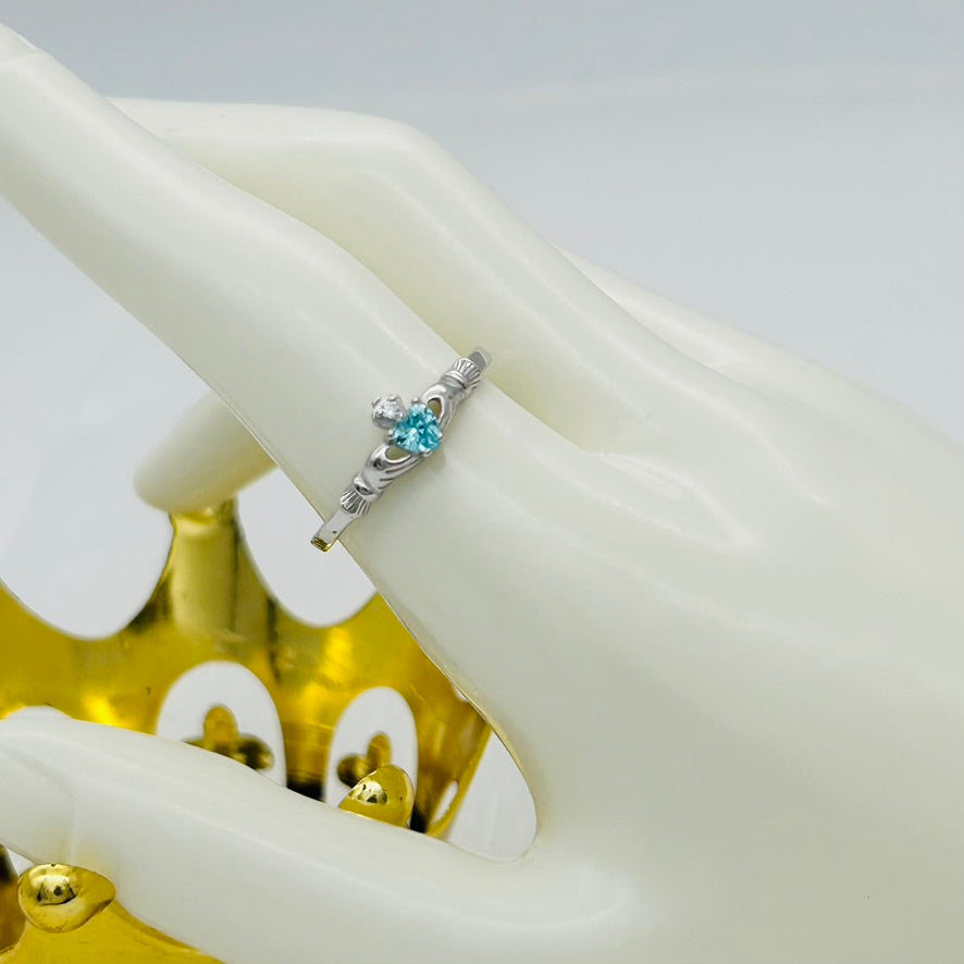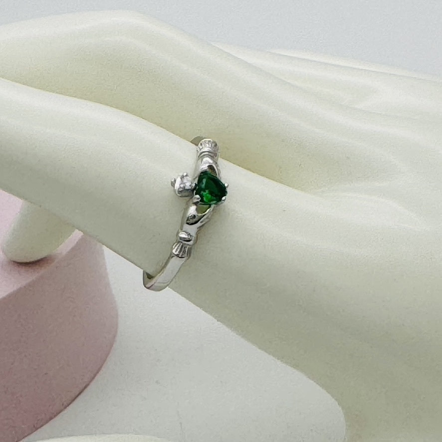 Crafted from high-quality .925 sterling silver, this stunning Claddagh ring is adorned with sparkling cubic zirconia stones. A timeless symbol of love, loyalty, and friendship, this elegant piece is the perfect addition to any jewelry collection. Expertly crafted, this ring shines bright and will make a beautiful gift for yourself or someone special.
