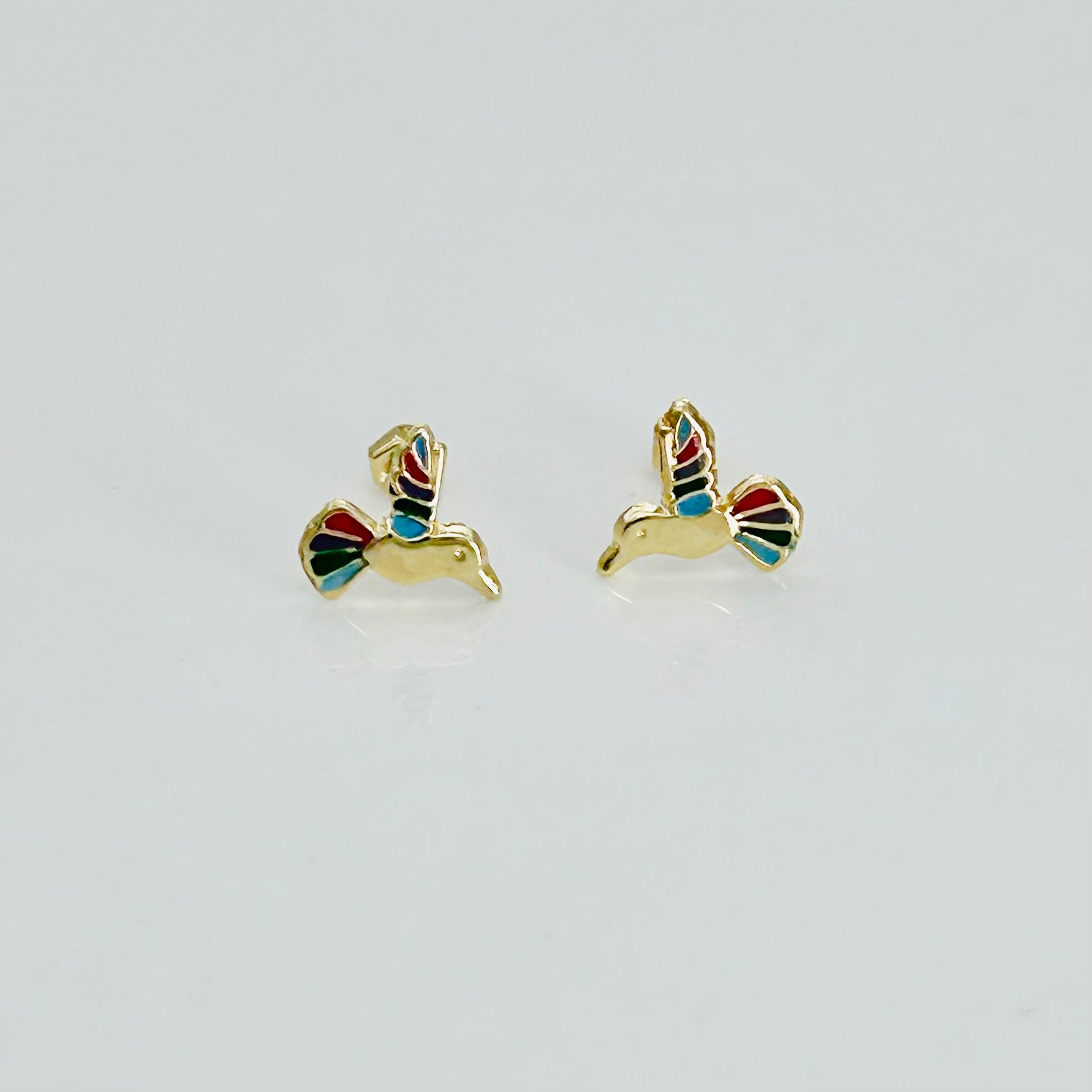 Crafted from lustrous 14K gold and vibrant enamel, these Humming Bird Earrings showcase exquisite detail and expert craftsmanship. Their delicate design captures the graceful movement of hummingbirds, making them a refined accessory that adds a touch of elegance and color to any ensemble. Perfect for those who appreciate fine jewelry with artistic flair.