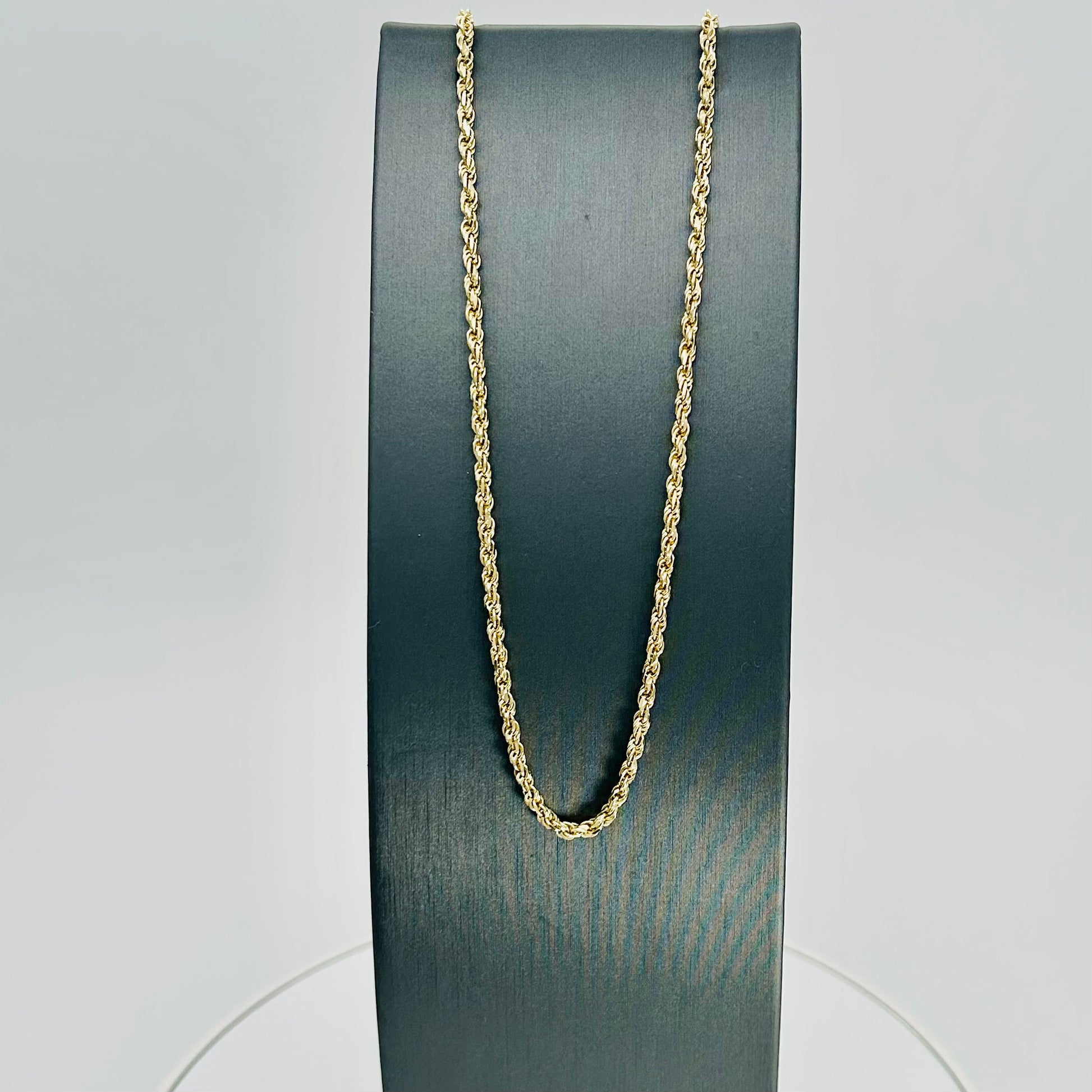 Crafted from high-quality 14K gold, this 3mm rope chain measures 24 inches, offering a perfect balance of durability and elegance. Its intricate twisted design reflects light beautifully, making it an ideal accessory for both everyday wear and special occasions. The chain’s sturdy construction ensures long-lasting wear, while its classic style complements a variety of pendants or can be worn alone for a refined look.