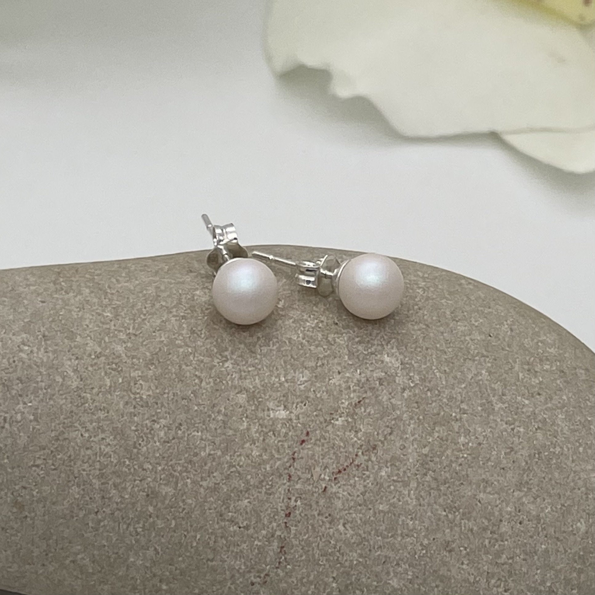 C1031ER Pearlescent White Pearls Earrings 6mm.