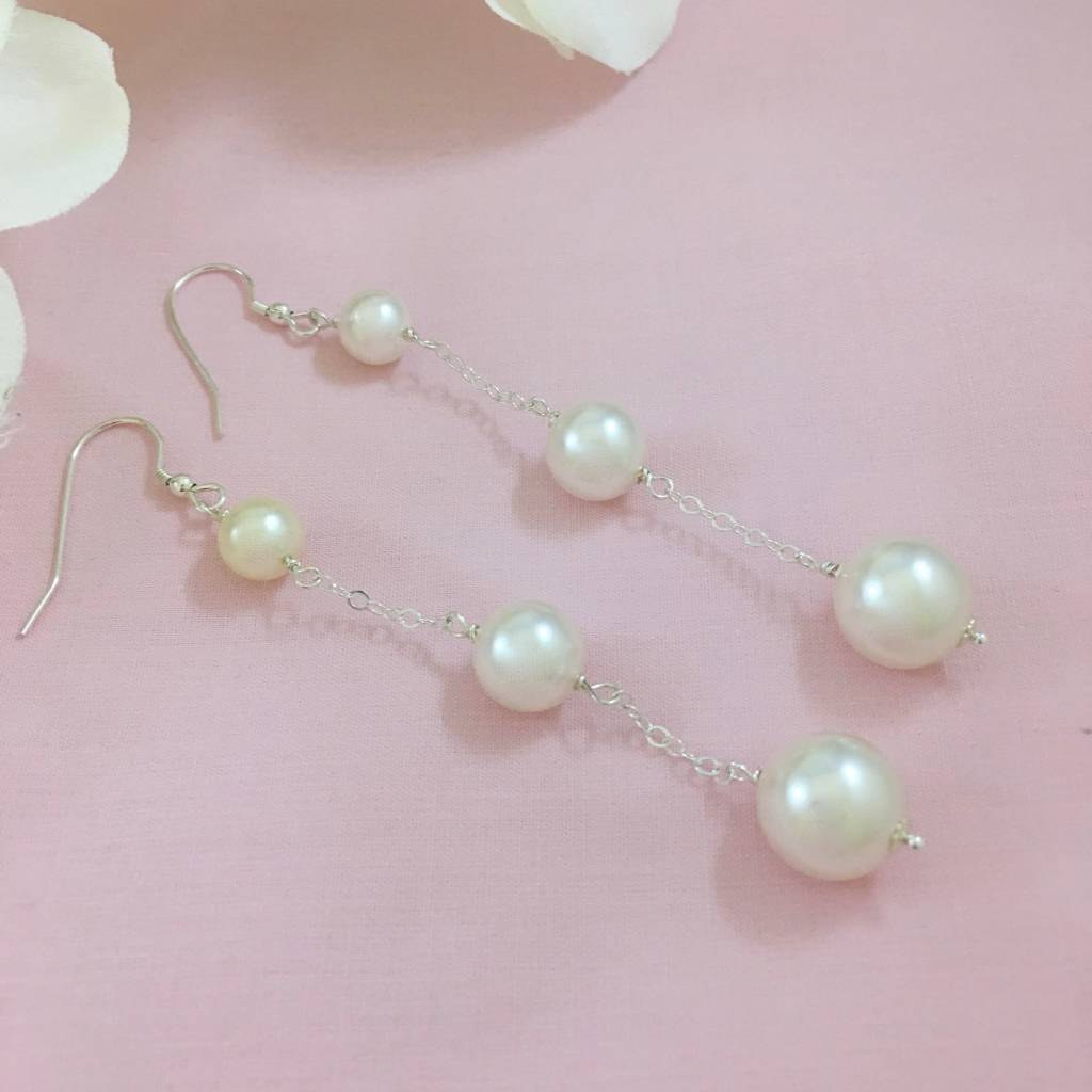 Crafted with genuine .925 sterling silver and stunning Austrian crystal pearls, our C1113ER White Pearls Earrings are a sophisticated choice for any occasion. At 4" long, they make a subtle yet elegant statement. These earrings will add a touch of glamour to any outfit and are perfect for those who appreciate quality and style.