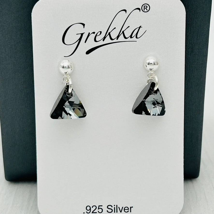 These stunning triangle earrings are expertly crafted from genuine 925 sterling silver and Austria crystals. The combination of these high-quality materials adds a touch of elegance and sophistication to any outfit. Experience the unbeatable shine and sparkle of these earrings, perfect for any occasion.