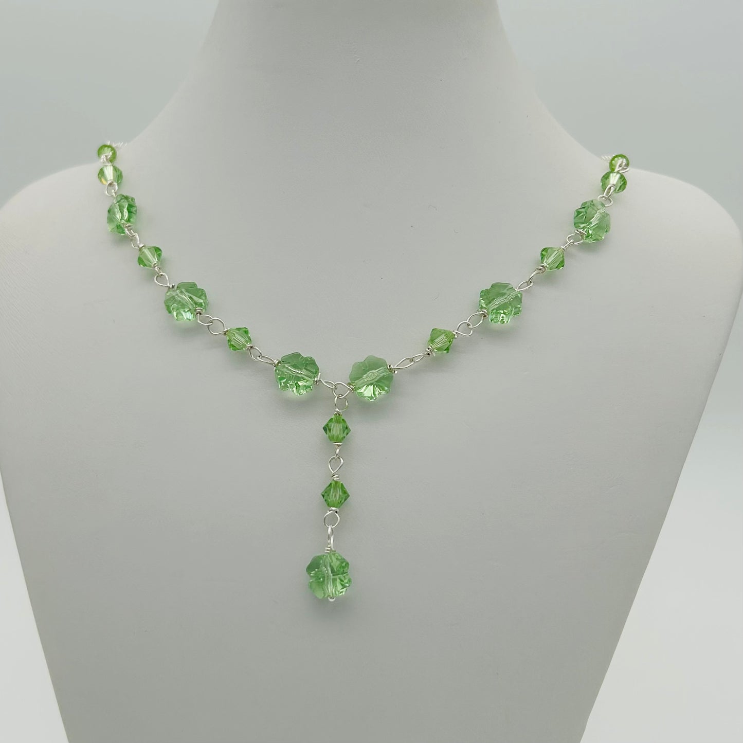 The C1323NL Green Clover Necklace features .925 sterling silver and sparkling Austrian Crystals. With its elegant design and high-quality materials, this necklace is a must-have for any jewelry collection. Perfect for adding a touch of sophistication and style to any outfit.