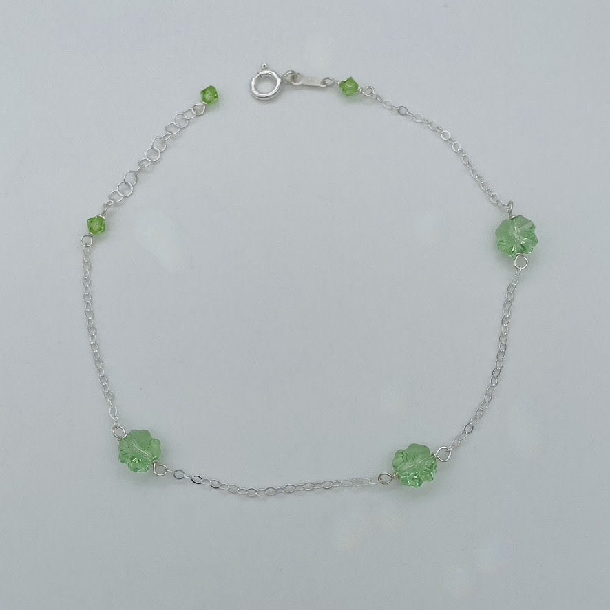 Enhance your style with our C1324 Green Clovers Anklet. Made with genuine 925 Sterling Silver and Austrian Crystals, this anklet adds a touch of elegance to any outfit. The perfect accessory for any occasion, it is both durable and beautiful. Elevate your look with this stunning piece.
