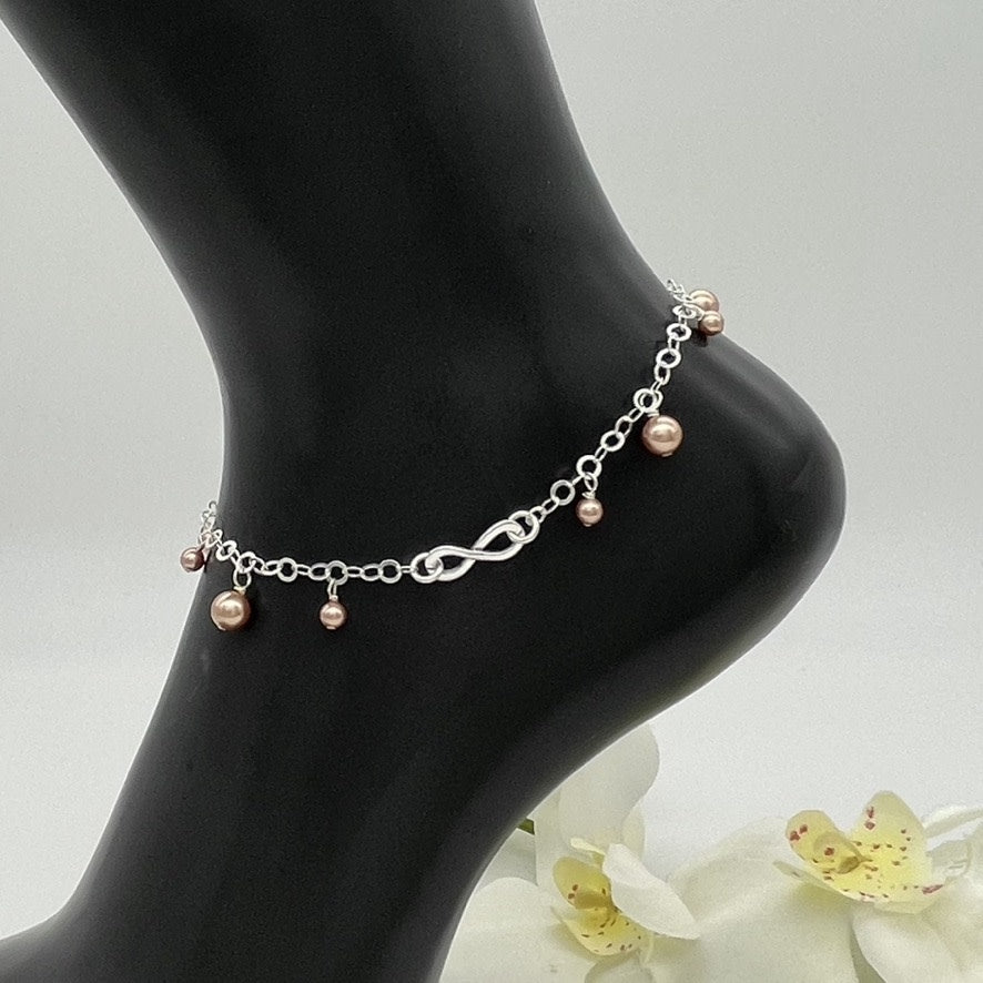 C1344 SW RG Pearls Anklet 9"
