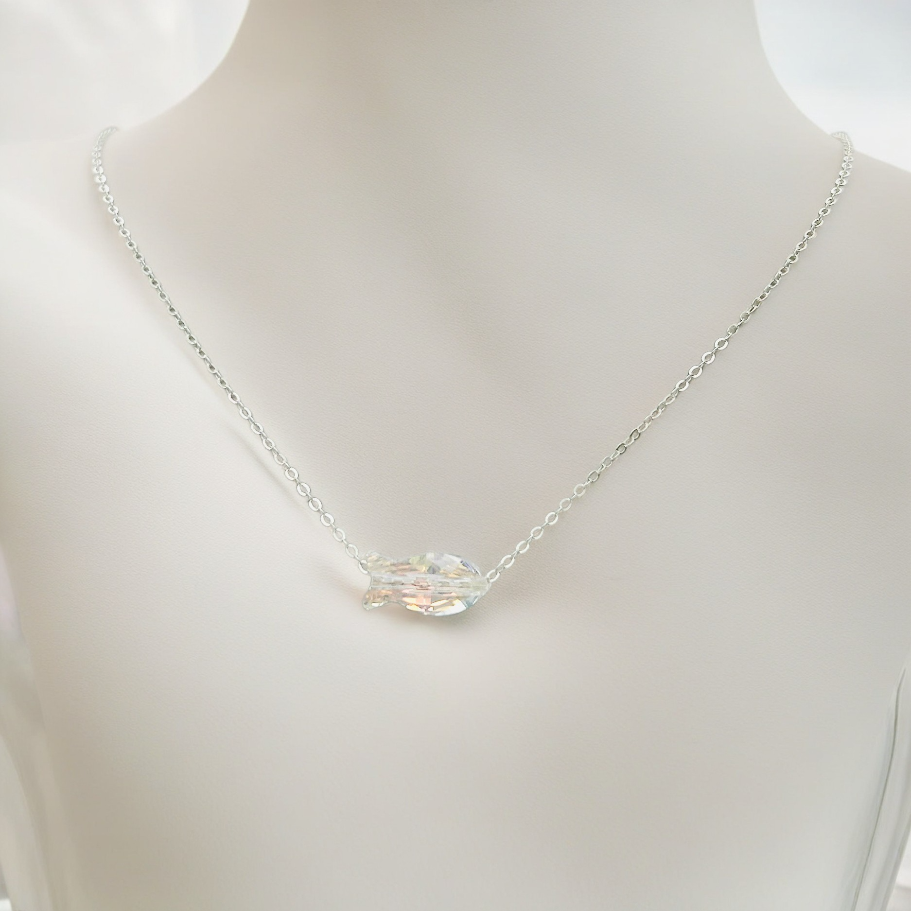 This C1455 Fish Necklace boasts an exquisite design crafted from .925 sterling silver and adorned with sparkling Austrian Crystal. The combination of these high-quality materials ensures a stunning and durable piece that is sure to make a statement. Dress it up or down for any occasion.