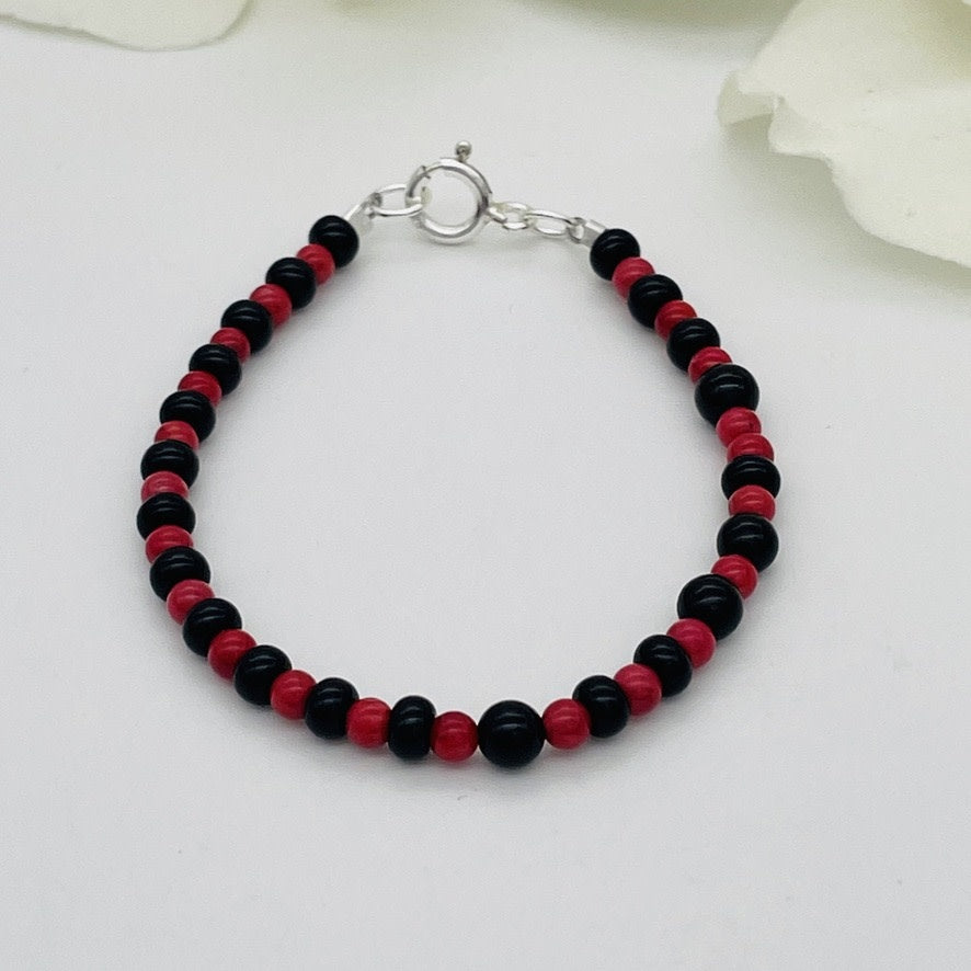 CH941BL Rede Dyed Bamboo Coral and Onyx Bracelete 6"