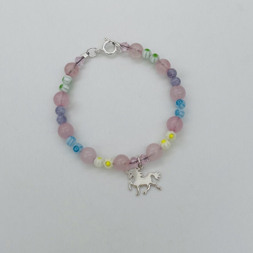 CH945BL Rose Quartz With Unicorn Bracelet 6"