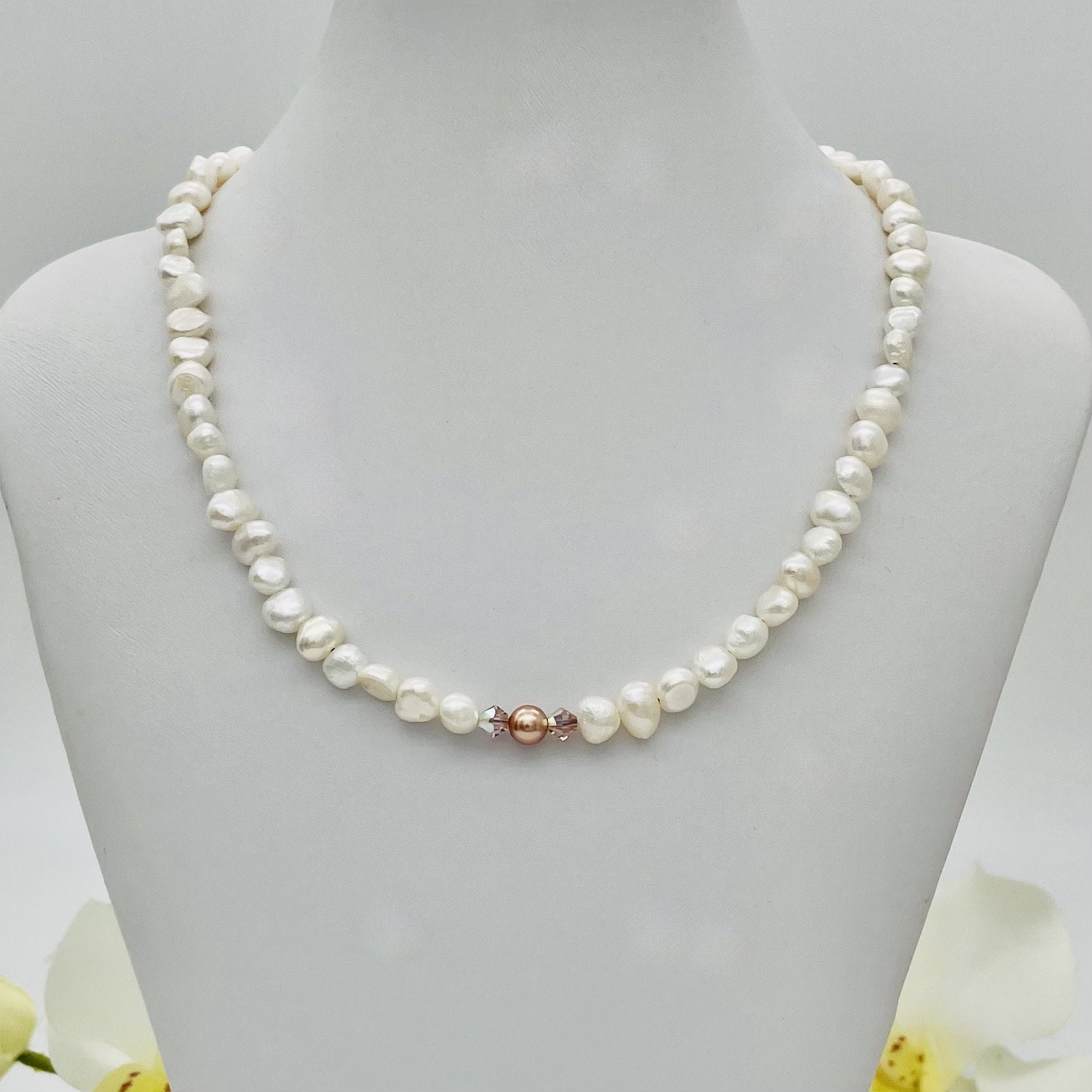 CH960NL White & Rose Gold Pearls Necklace 14"
