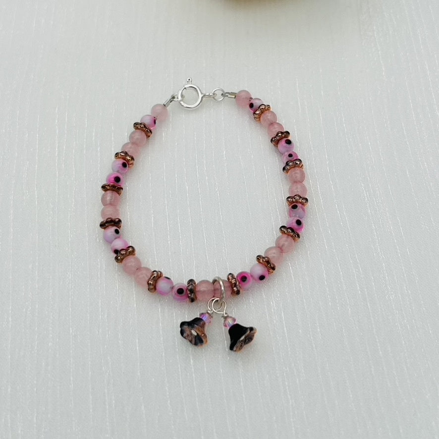 CH979BL Rose Quartz & Pink Eyes Bracelet 6"