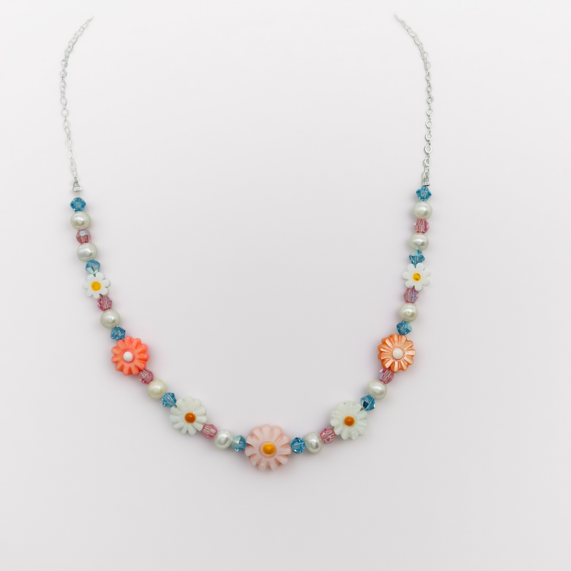 Made with .925 sterling silver, Austrian crystals, and mother of pearls, the CH990 Flowers Necklace 16" adds a touch of elegance to any outfit. The high-quality materials ensure lasting beauty, while the delicate flower design brings a touch of femininity. Perfect for any occasion, this necklace is a must-have for any jewelry collection.