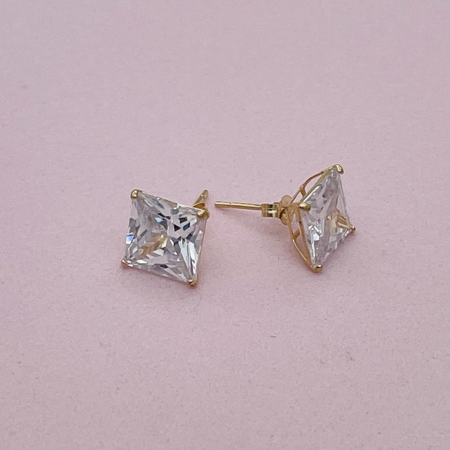Expertly crafted from genuine 14K gold and sparkling cubic zirconia, these G08ER square earrings add a touch of luxury to any ensemble. With their 8mm size, these earrings are sure to catch the eye and make a statement. Elevate your style with these high-quality earrings.