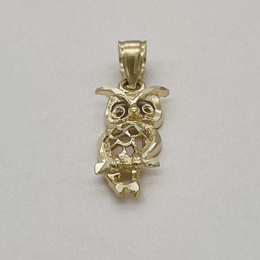 G89P1 4K Gold Owl Pendant 27mm. X 8mm.