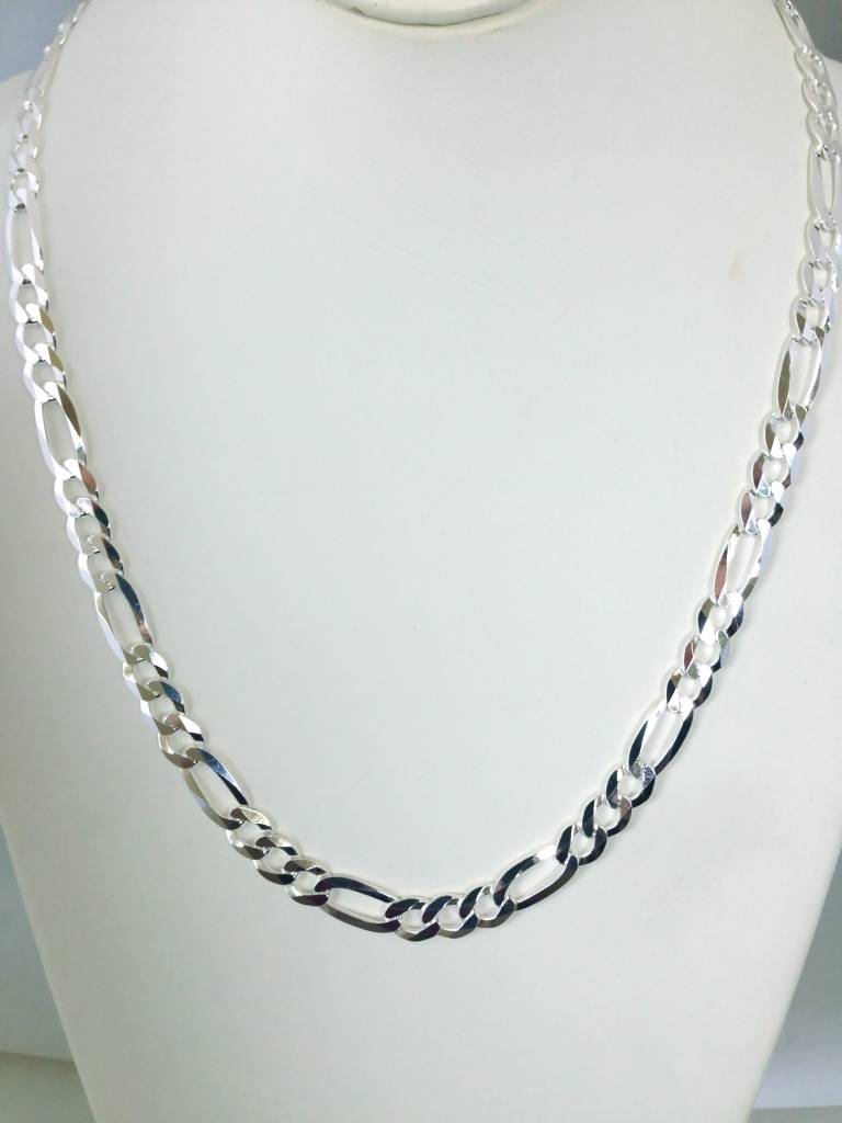 Crafted with genuine 925 sterling silver, the S728CH Figaro Chain boasts a width of 7mm and a length of 24 inches. Its high quality material ensures durability and a luxurious shine. Elevate any outfit with this classic and timeless chain.