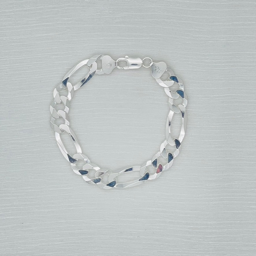 Crafted with high-quality .925 sterling silver, this 11mm.9" Flat Figaro Bracelet is a timeless and versatile accessory. Perfect for any occasion, its classic design offers both elegance and durability. Sterling silver is known for its luster and hypoallergenic properties, making this bracelet a stylish and safe choice for all.