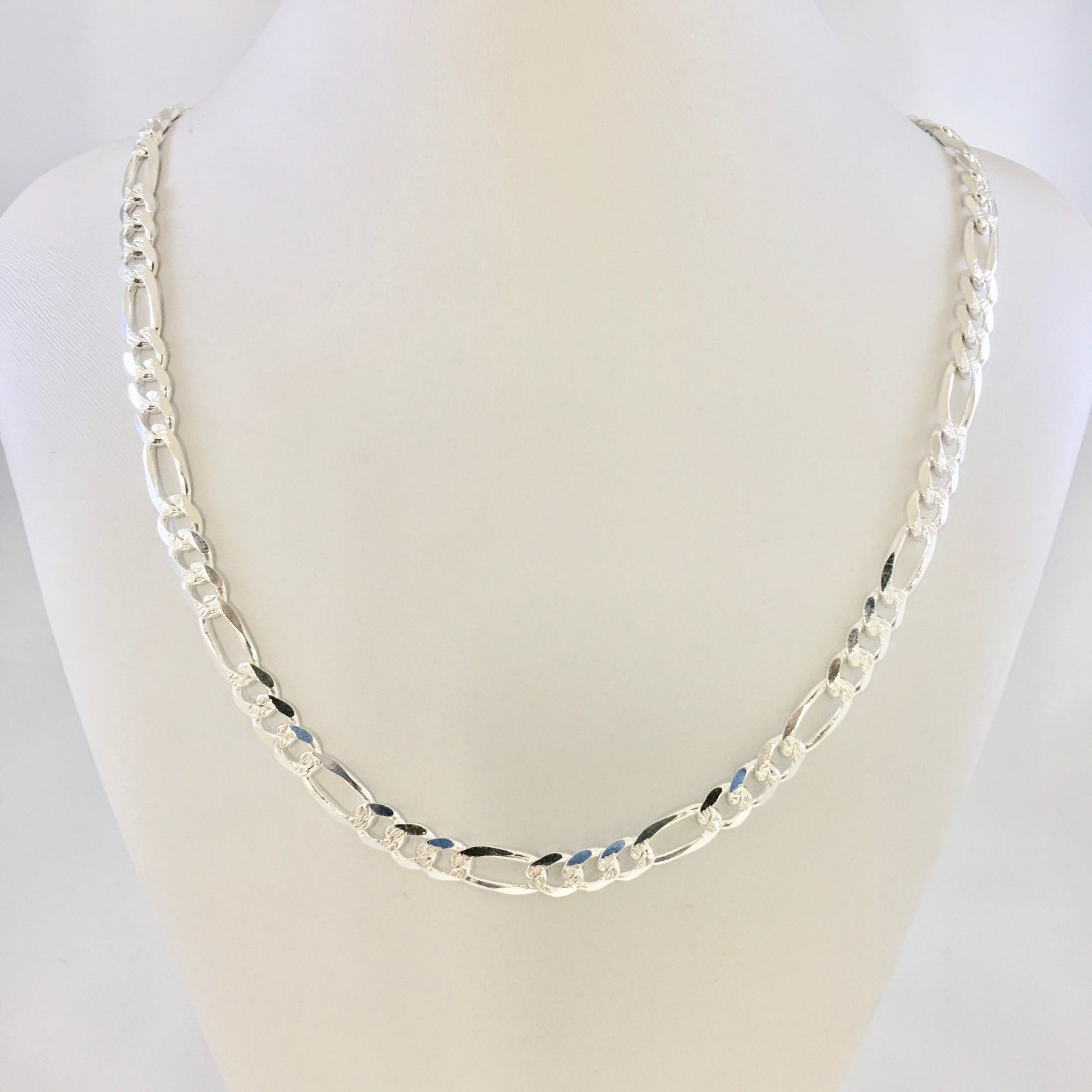 This S1239 Super Flat Figaro Pave Chain boasts a shimmering .925 sterling silver construction, ensuring durability and timeless style. Enjoy the elegant 5.6mm width and 20" length, perfect for adding a touch of sophistication to any outfit. Elevate your jewelry collection with this expertly crafted chain.