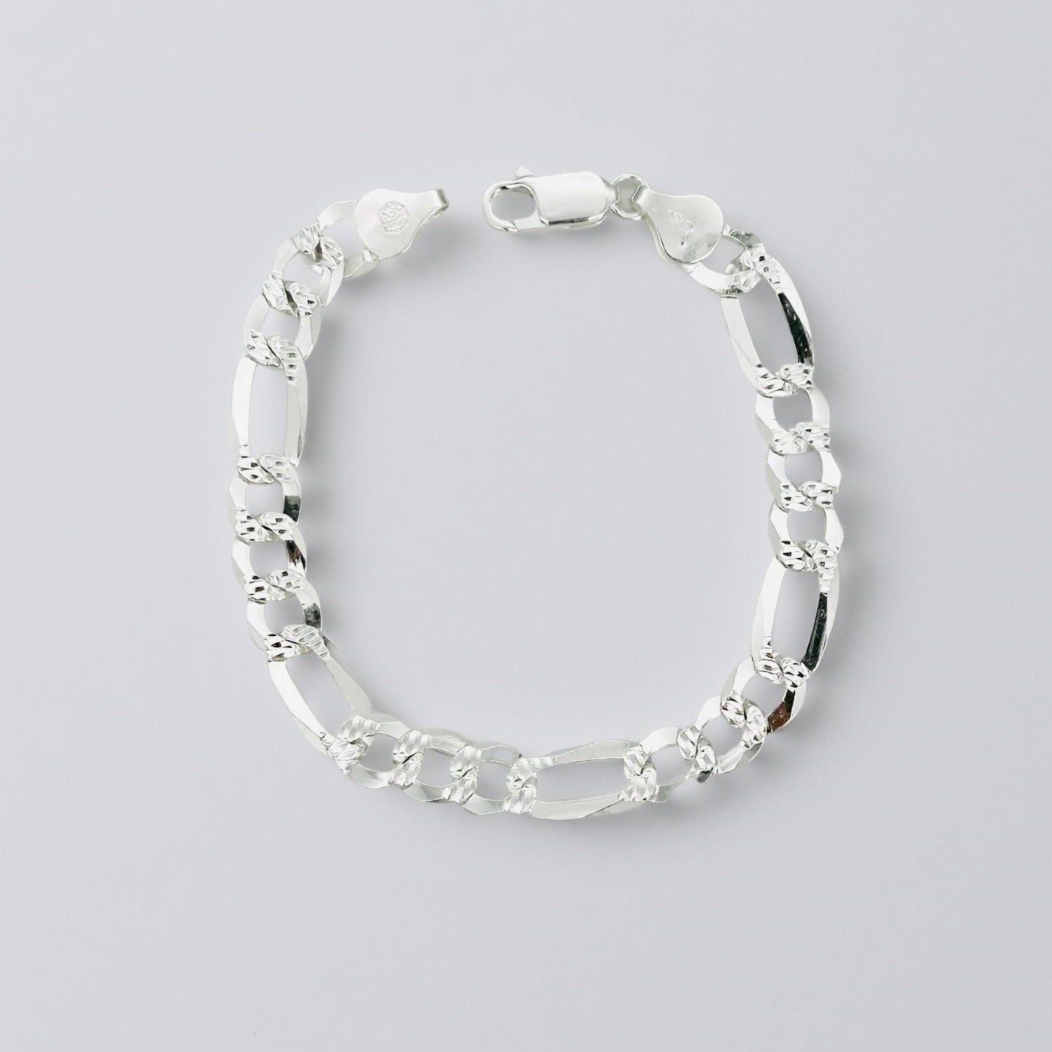 Expertly crafted from the finest 925 sterling silver, the S1239 Super Flat Figaro Pave 5.6mm. X 9" bracelet exudes timeless elegance and sophistication. Perfect for any occasion, this stunning piece offers a classic and versatile look that will enhance any outfit. Elevate your jewelry collection with this must-have accessory.