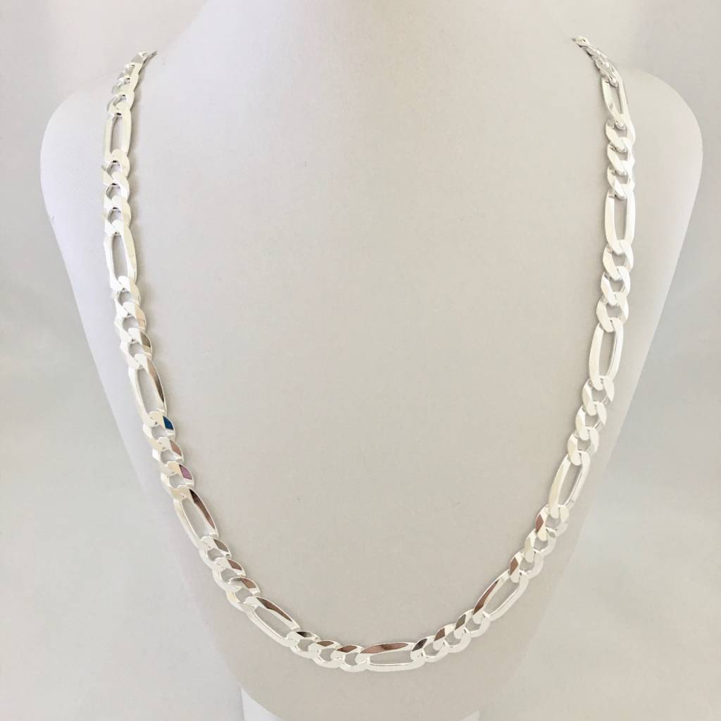 This 34" Super Flat Figaro Chain is made of genuine 925 sterling silver and has a width of 8mm. It is both durable and stylish, making it a perfect accessory for everyday wear. With its high-quality material and classic design, this chain is sure to elevate any outfit.