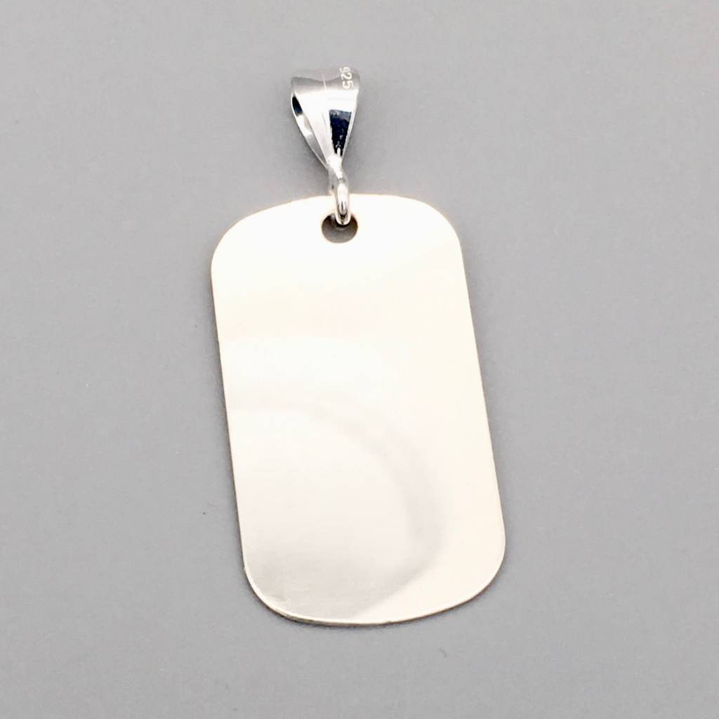 This S1289 Name Tag Pendant is made of genuine 925 Sterling Silver, measuring 35mm in length and 17mm in width. With its high-quality material and elegant design, it's a timeless accessory that adds a touch of sophistication to any outfit.