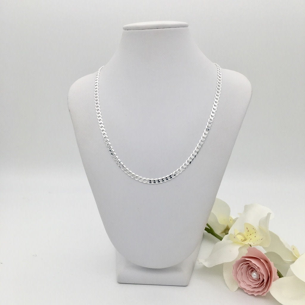 Crafted from genuine 925 sterling silver, the S1375 curb link chain offers both durability and elegance. With a measurement of 4mm x 16", this chain is the perfect size for everyday wear. Elevate any outfit with this timeless and versatile piece.
