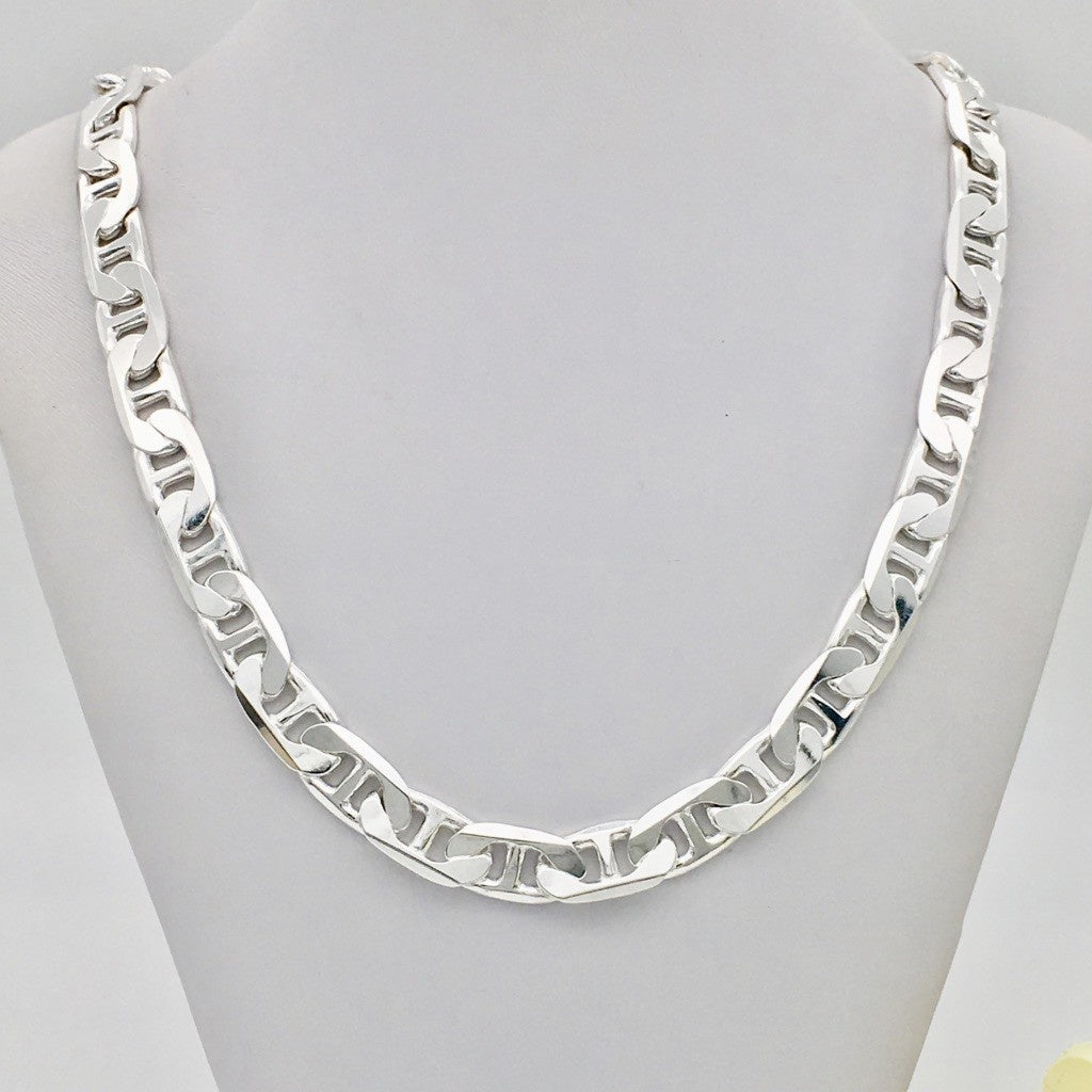 Expertly crafted with 925 Sterling Silver, the S1450 Marina Chain boasts a substantial 9.6mm width and a versatile 22" length. Its sturdy construction ensures durable wear, making it the perfect addition to any jewelry collection. Elevate your style with this timeless piece.