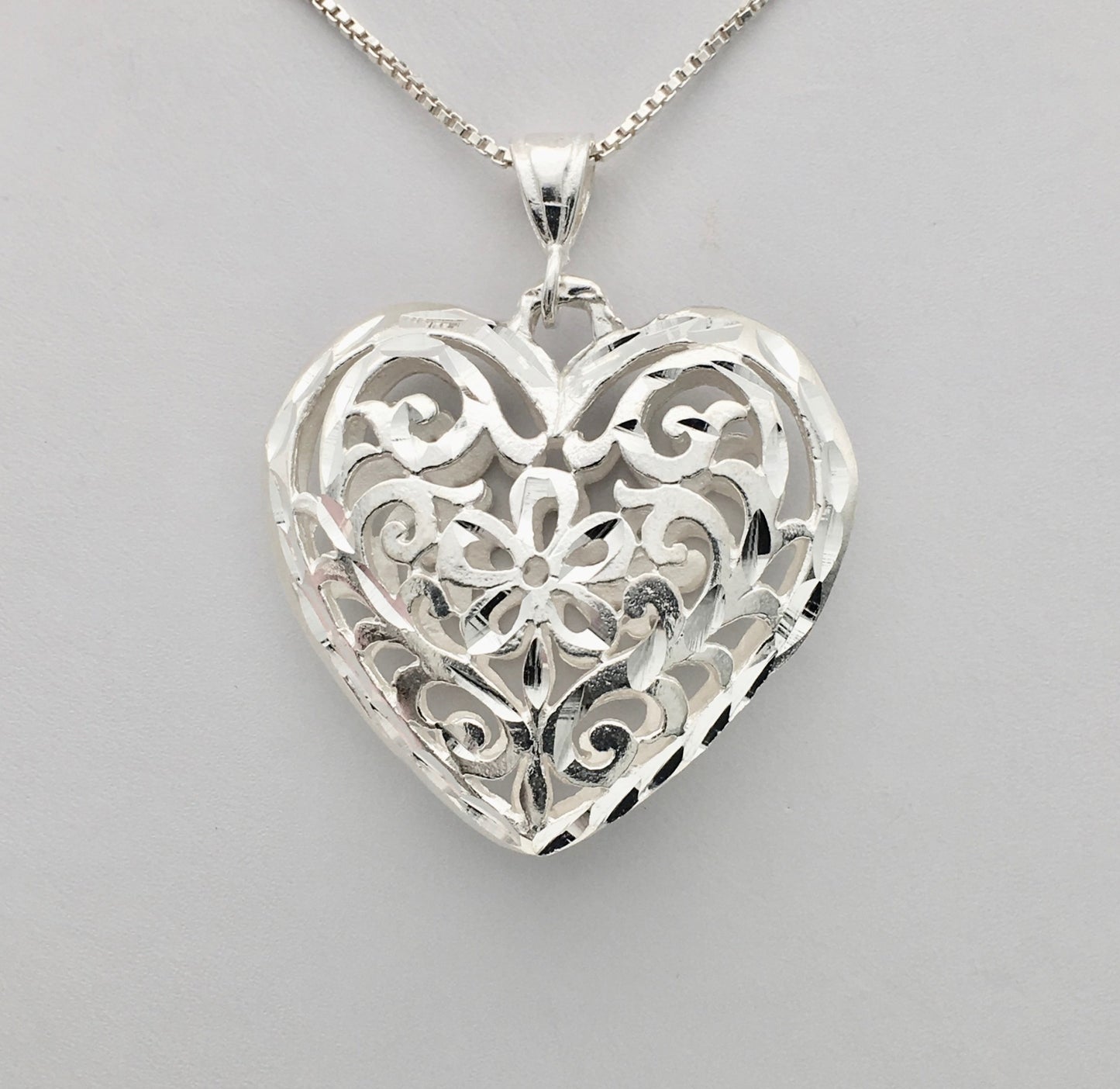 This 925 Sterling Silver Heart pendant is 40mm x 38mm, making it a beautiful and delicate addition to any jewelry collection. Crafted with expert precision, this pendant is sure to make a statement and add a touch of elegance to any outfit.