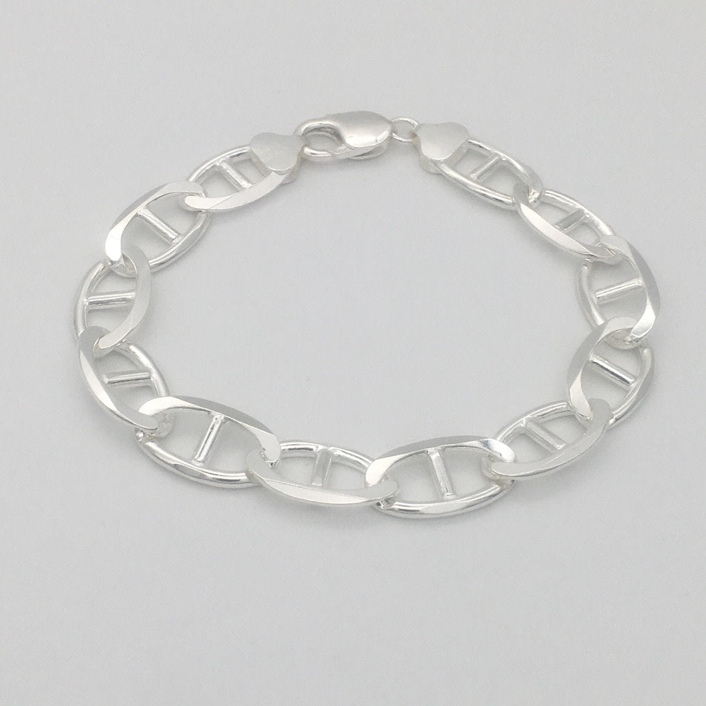Crafted from genuine 925 Sterling Silver, the S1521BL bracelet boasts an impressive 11.8mm width and a comfortable 9" length. This classic flat Marina design exudes elegance and is perfect for any occasion. Durable and timeless, this bracelet is a must-have for any jewelry collection.