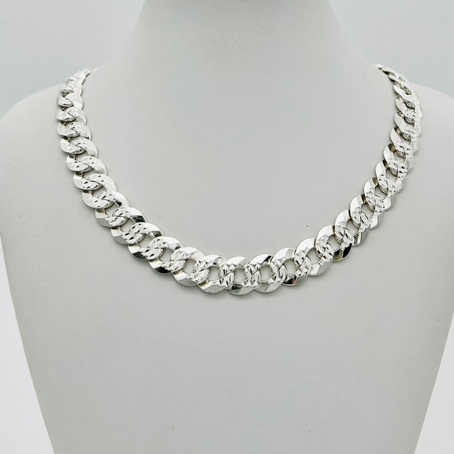 Expertly crafted with genuine 925 Sterling Silver, the S1549CH Curb Pave Chain stands at 11mm x 22" making it a versatile yet luxurious addition to any jewelry collection. Elevate your style with the shine and durability of this exquisite chain.