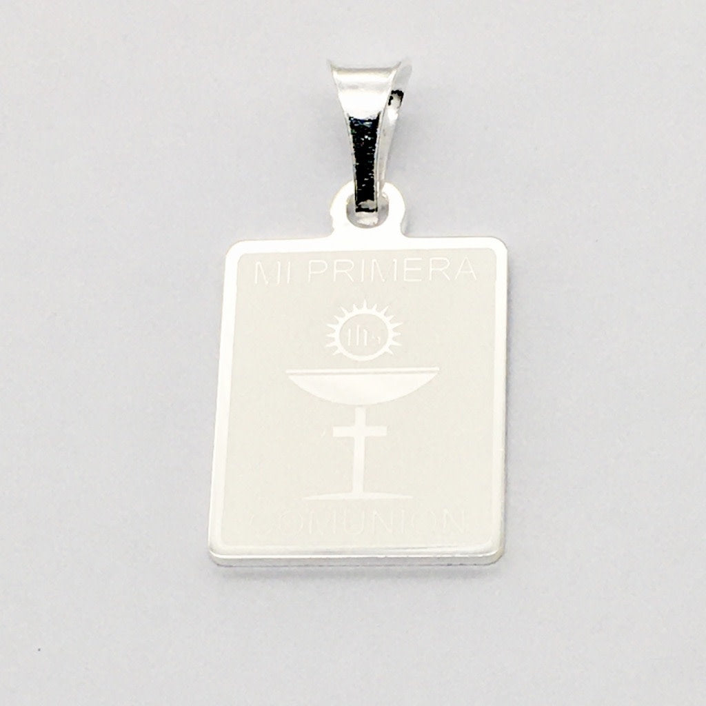 Crafted with genuine 925 sterling silver, the S1552P First Communion Pendant exudes elegance. Measuring 30mm x 16mm, it is the perfect accessory for any special occasion. Enhance your look with this stunning piece and make a lasting impression.