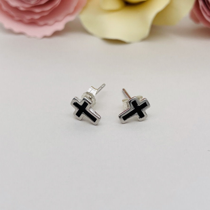 Expertly crafted from genuine 925 sterling silver and accented with black enamel, these S1650ER Cross Earrings are a timeless and elegant addition to any jewelry collection. With their sleek 8mm x 5mm size, they offer subtle yet striking style for any occasion. Elevate your look with the expert craftsmanship and sophisticated design of these beautiful earrings.