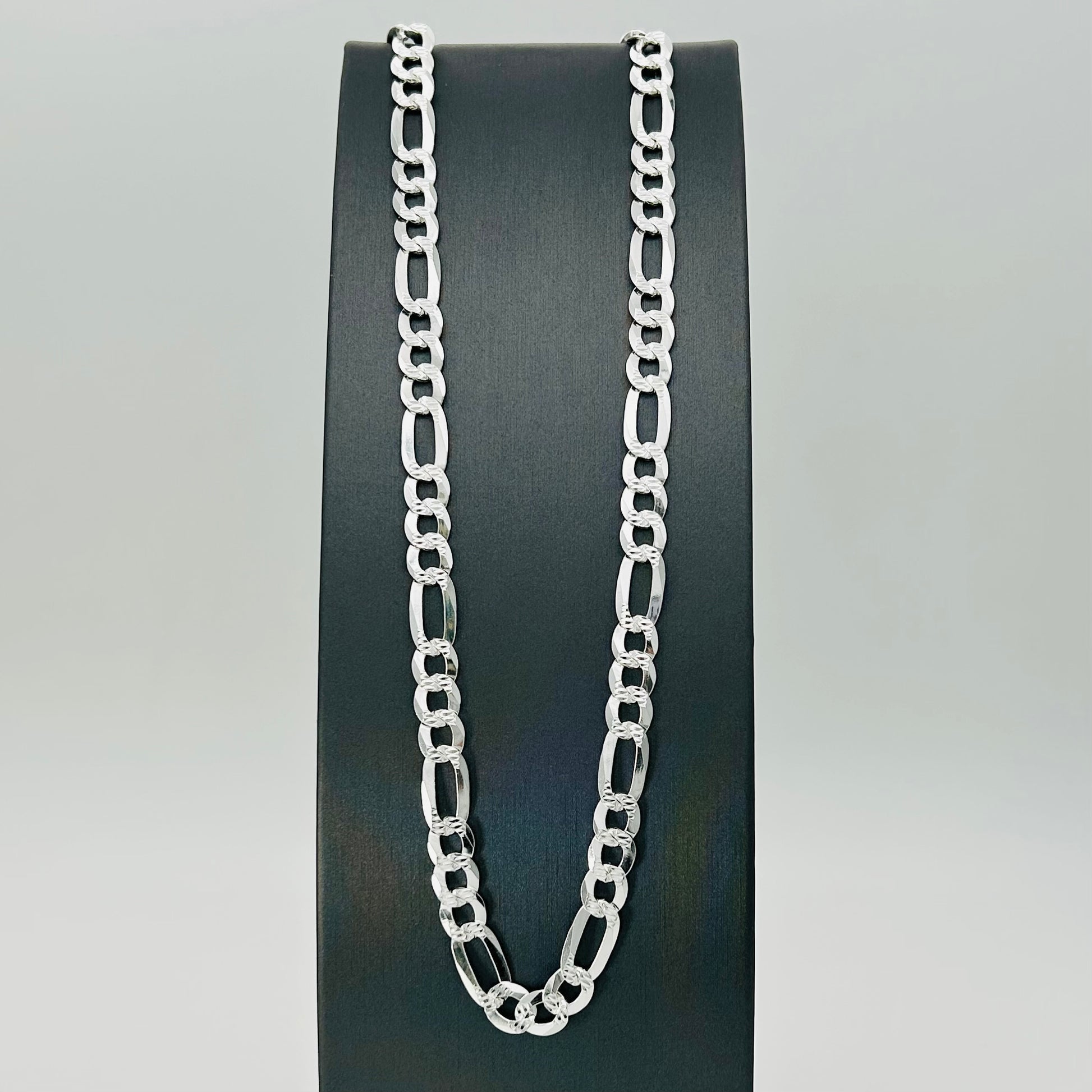 Crafted from .925 sterling silver, the S1770CH Super Flat Figaro Pave Chain offers a modern and sleek design with a width of 7.7mm. Adorned with pave accents, this 30" chain adds a touch of elegance to any outfit. A must-have for those who appreciate quality and style.