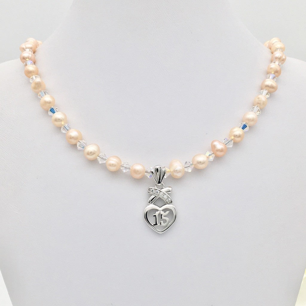 Crafted from 925 sterling silver, the SH969NL Quinceañera 18" necklace features a lustrous pearl centerpiece, symbolizing purity and elegance. This expertly designed piece offers both durability and timeless beauty, making it an ideal accessory for celebrating a special milestone with sophistication.