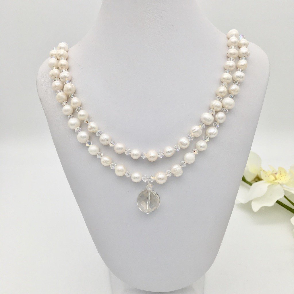 Crafted from genuine 925 sterling silver, this 20-inch necklace features lustrous freshwater pearls and sparkling European crystals. Its refined design combines classic elegance with expert craftsmanship, making it a timeless accessory that enhances any ensemble with subtle sophistication.