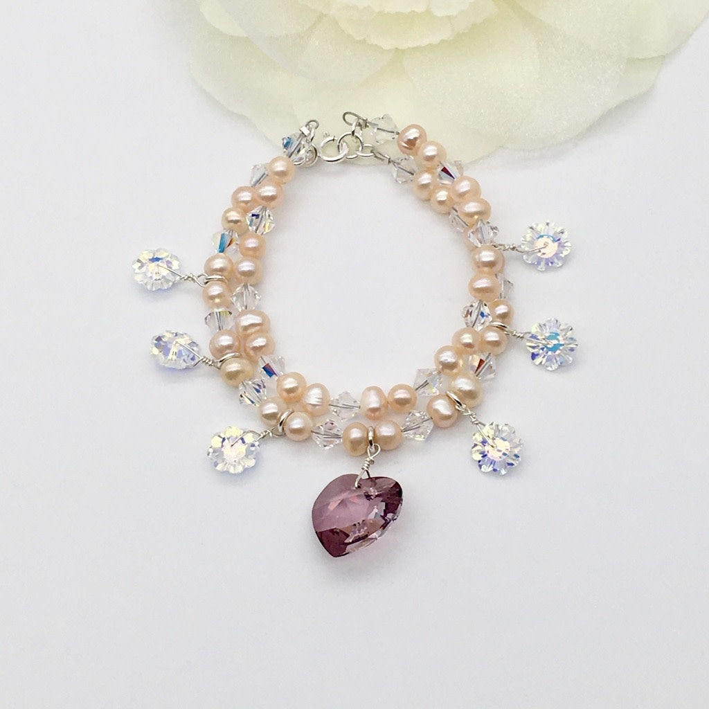 Crafted from genuine 925 sterling silver, this 7-inch bracelet features delicate pearls and sparkling crystals, combining elegance with timeless quality. Its refined design makes it a versatile accessory suitable for both everyday wear and special occasions. The pink heart detail adds a subtle touch of charm, enhancing its sophisticated appeal.