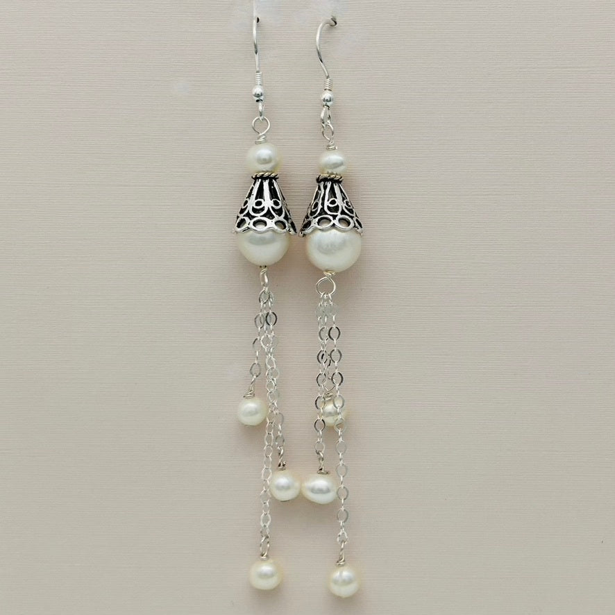 Upgrade your accessory game with our SH1014ER White Fresh Water Pearls Earrings. Made with .925 sterling silver and lustrous freshwater pearls, this timeless piece exudes class and sophistication. Its versatile design adds a touch of elegance to any outfit. Expertly crafted and 90mm long, these earrings are a must-have for any jewelry collection.