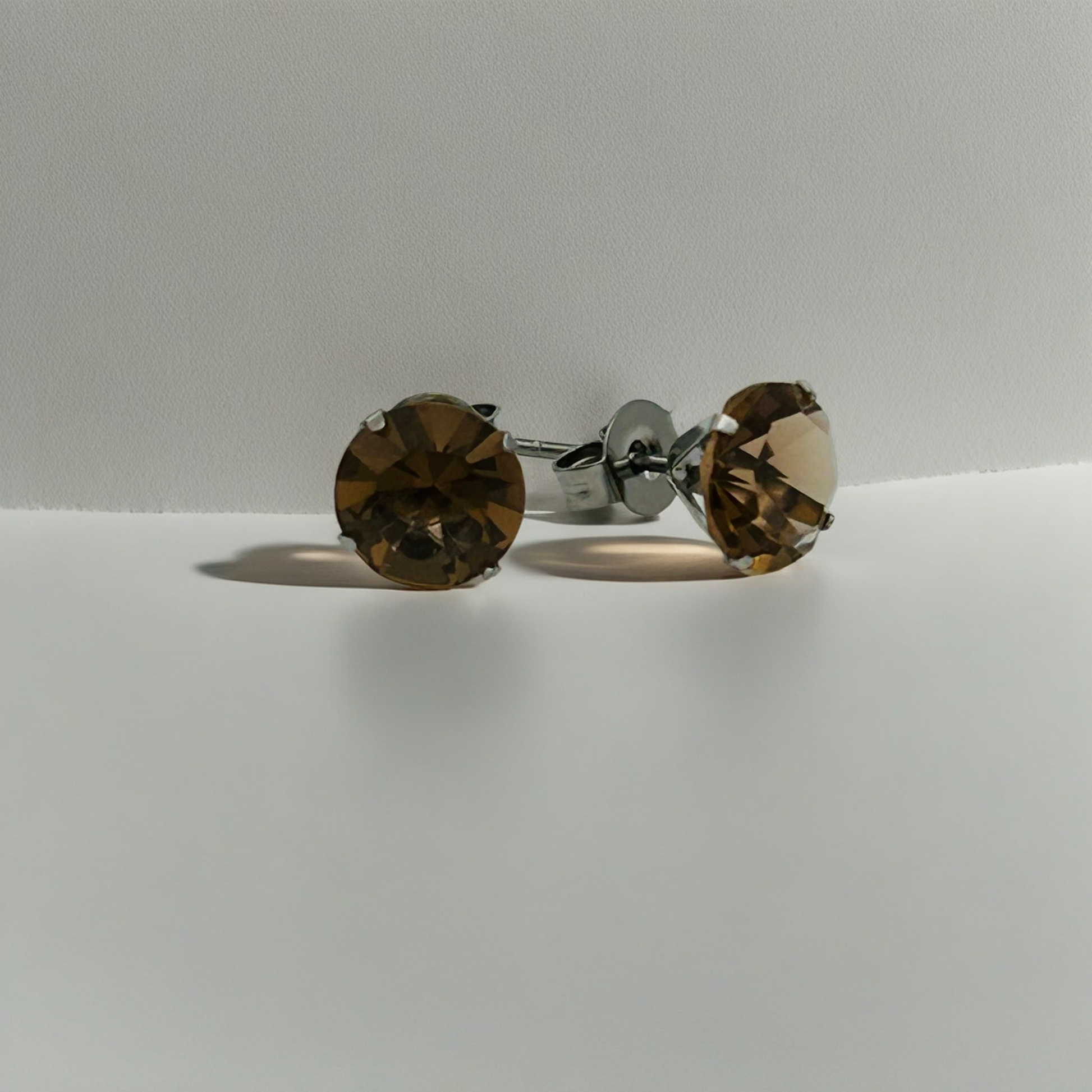 These SS1040 Champagne Post Earrings feature a 9mm design with stainless steel and sparkling cubic zirconia, making them a durable and elegant addition to any outfit. Perfect for adding a touch of luxury to your style.