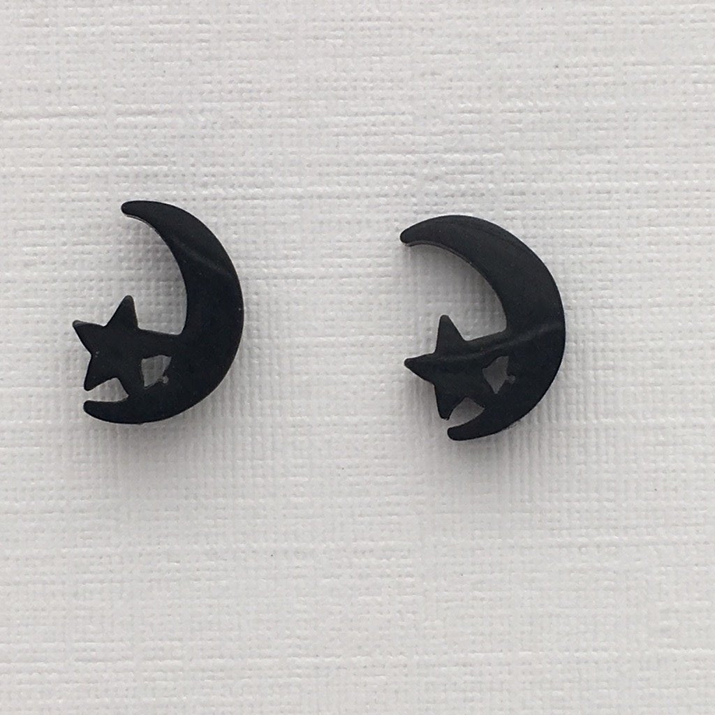 These earrings feature a unique black plated stainless steel material, giving them a sleek and modern appearance. The durable 316 stainless steel ensures long-lasting wear. Add a touch of celestial elegance to any outfit with these charming moon and star earrings.