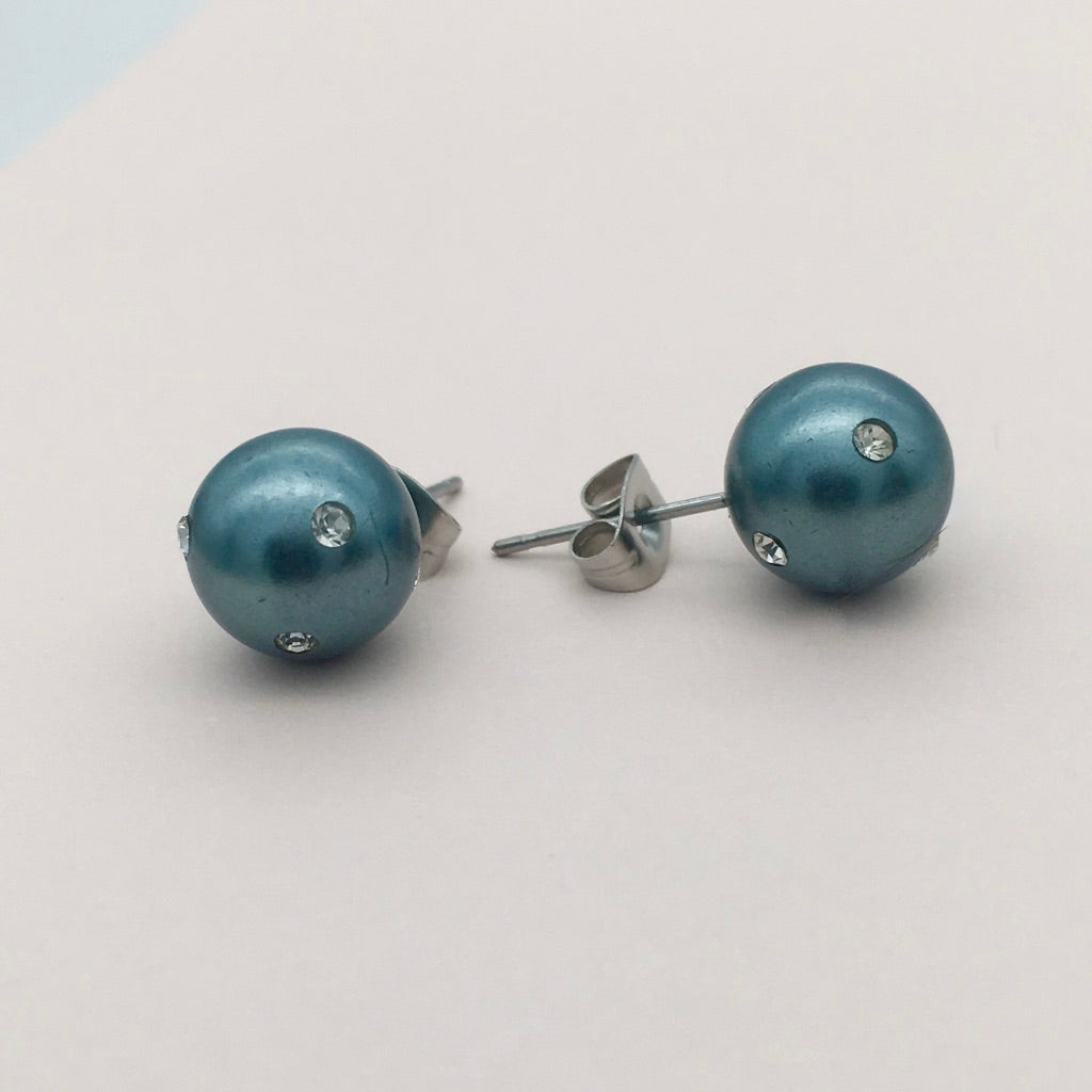 Expertly crafted SS1113 Earrings featuring a stunning 8mm blue stone, encased in high-quality stainless steel and accented by glass pearls. Elevate your style with these elegant and durable earrings. Perfect for any occasion.