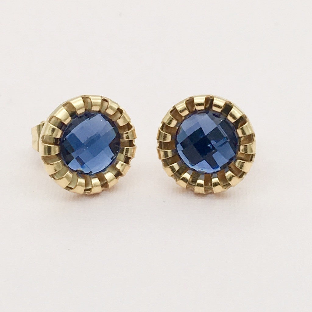 These SS1175 Gold Plated Blue Earrings have a sleek and durable design, made from Gold Plated 316 Stainless Steel. The 10mm size adds a touch of elegance to any outfit. Perfect for those looking for high-quality and long-lasting jewelry.