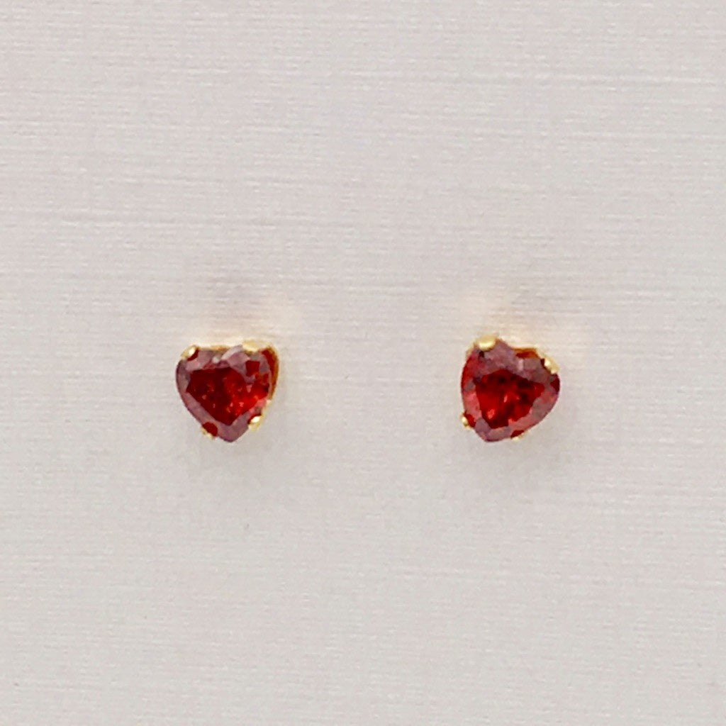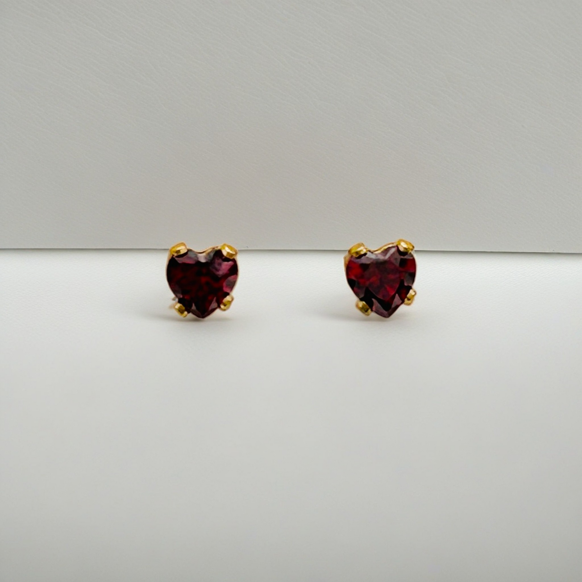 SS1177ER Gold Plated Garnet Heart Earrings 3mm