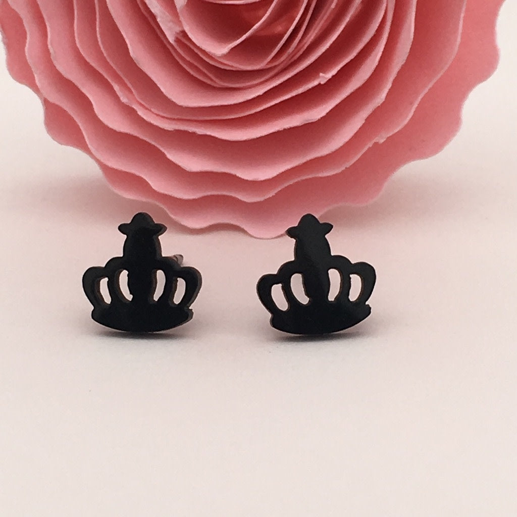 SS1182 Black Crown Earrings 10mm. x 7mm.