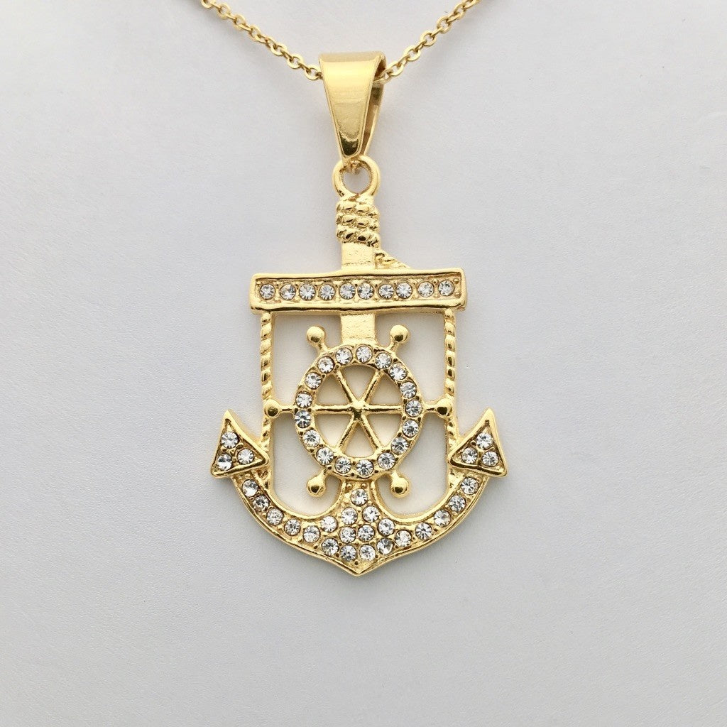 This SS1249NL Gold Plated Anchor Necklace is crafted with 316 Stainless Steel and plated with 14K Gold, ensuring durability and a luxurious finish. Perfect for adding a touch of elegance to any outfit, this 26" necklace will make a statement with its classic anchor design.